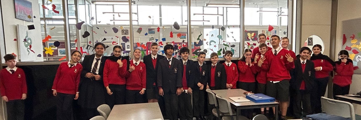 The Matisse Environment in C1.10 was created earlier this term by the 7A Art class. They were inspired by the work of Henri Matisse and his Cut-Outs as well as the Stained Glass Windows he created in The Rosary Chapel, Vence, France.