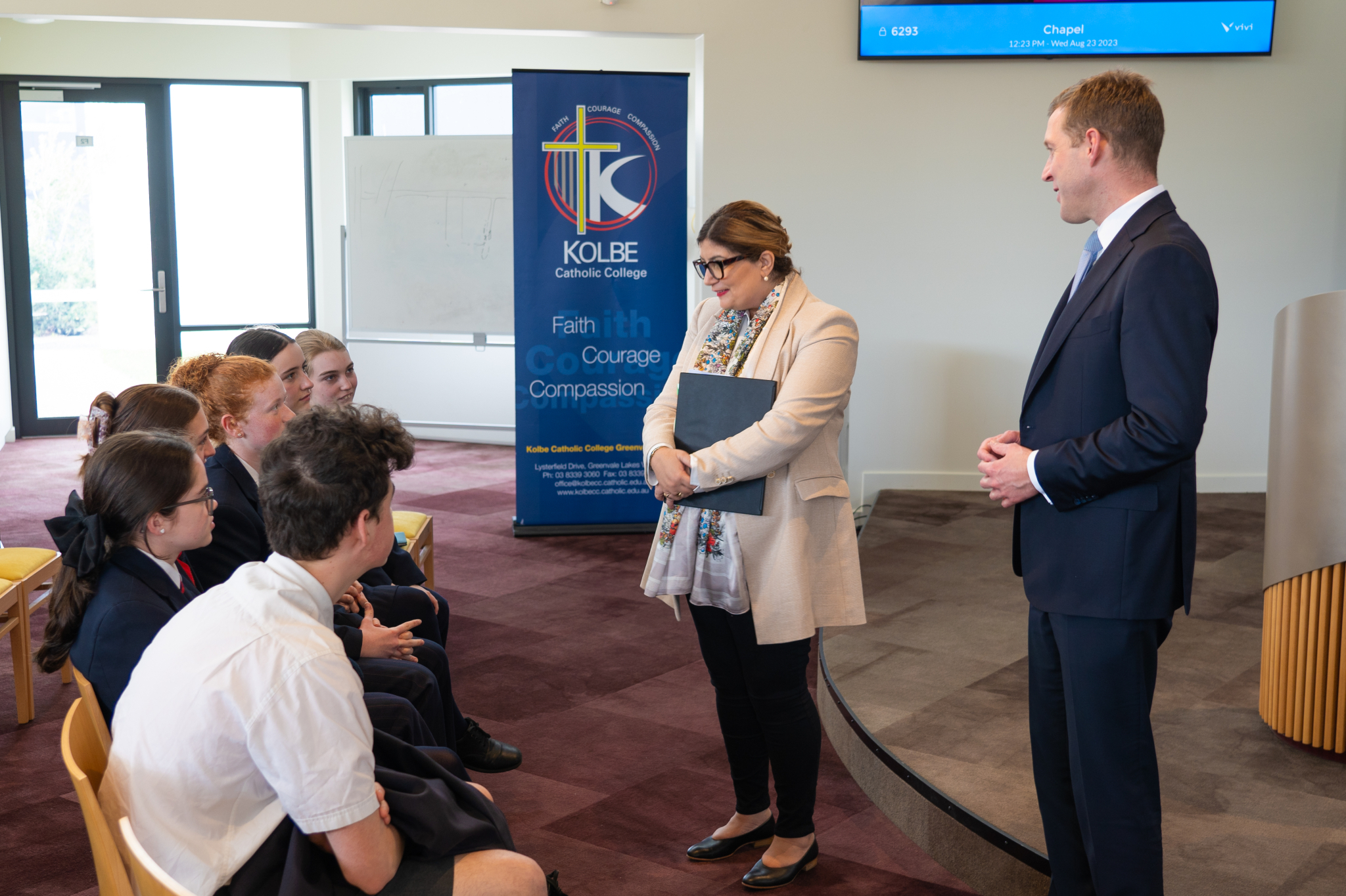 On August 23, Minister of Veteran Affairs, Youth and Small Business, Natalie Suleyman and Local MP Iwan Walters visited Kolbe School to launch the Spirit of Anzac Prize. The Prize is a great opportunity for students to learn about the Anzac spirit. This year entries are encouraged to explore the Anzac legacy post-World War I and its relevance in our diverse, multicultural twenty-first-century society.