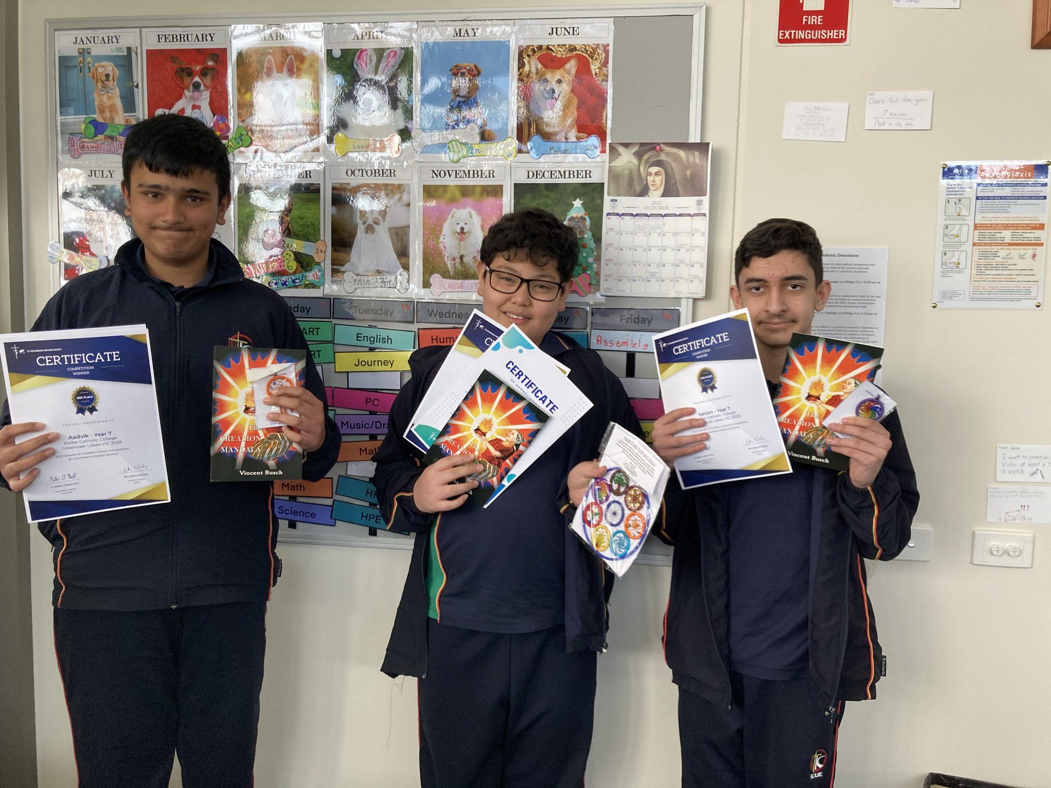 Recently some of our Year 7 students entered the Columban Season of Creation Writing Competition. Three of our students were lucky winners. Congratulations to these three students for taking out first, second and third places in their division.
