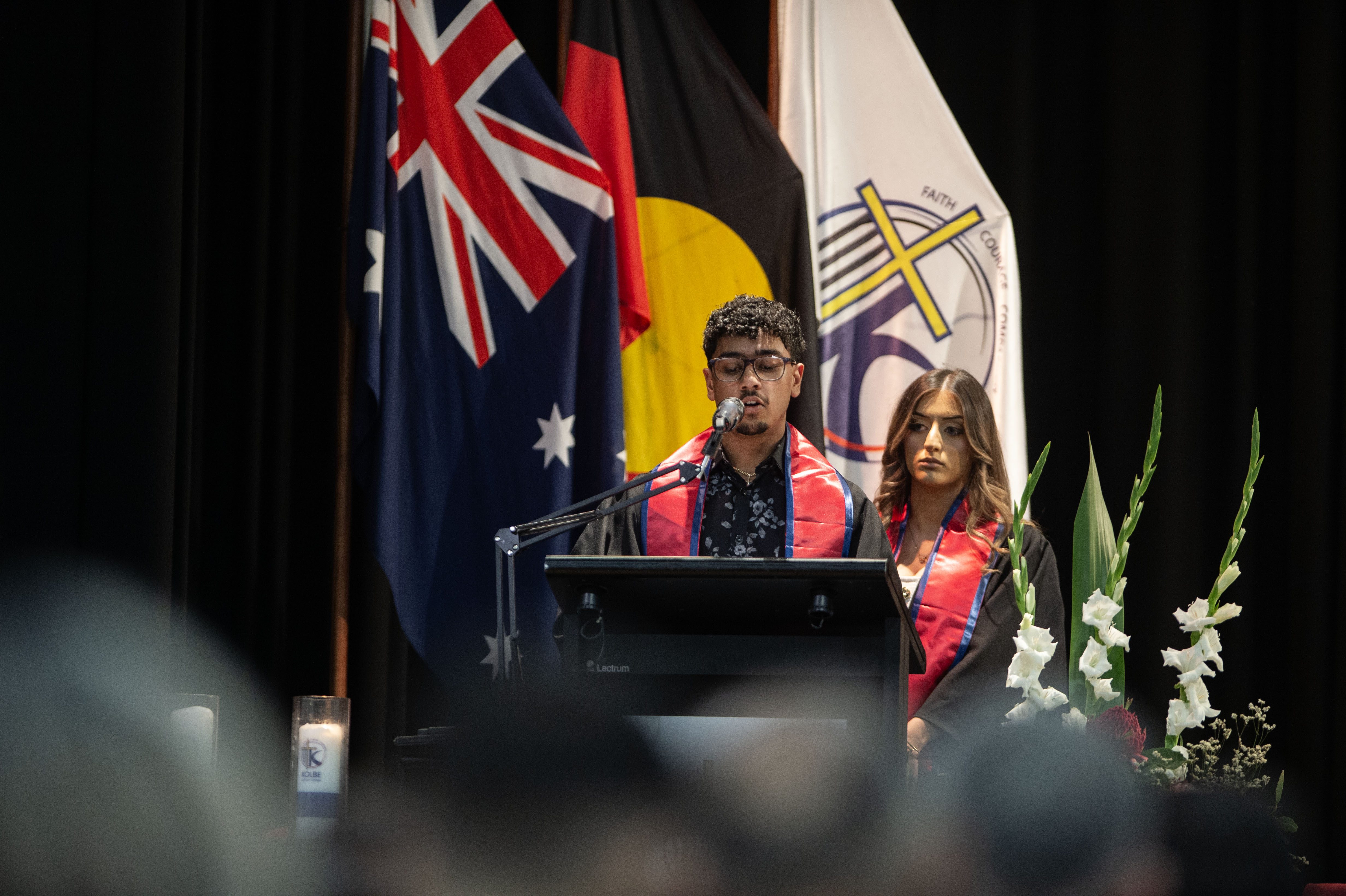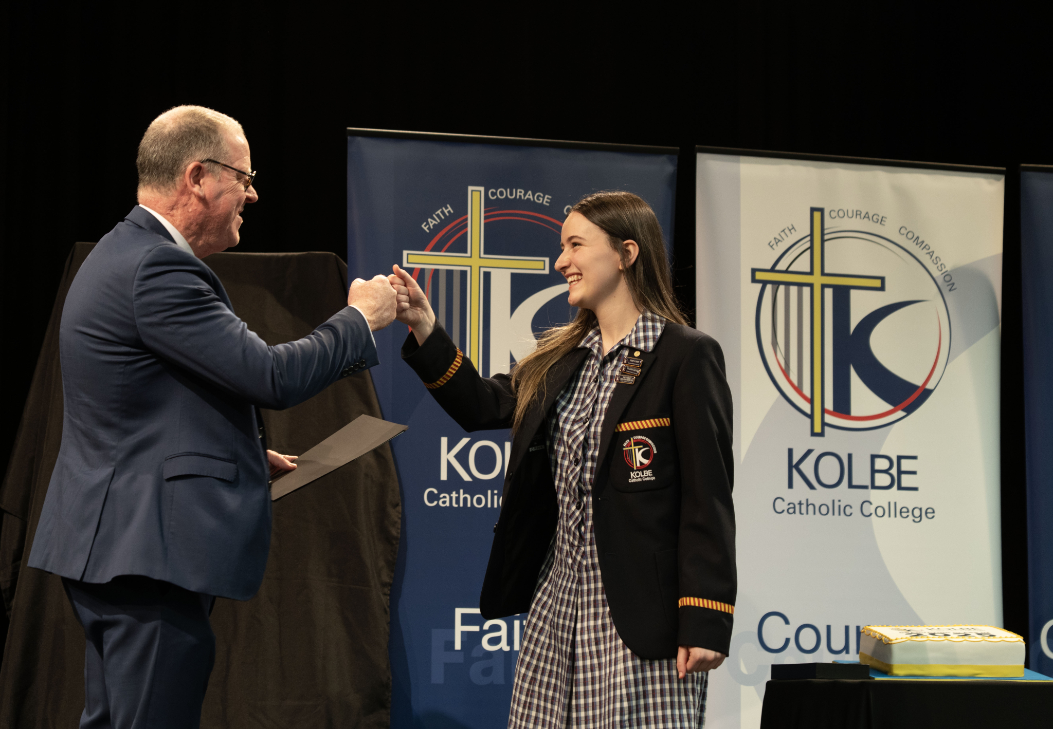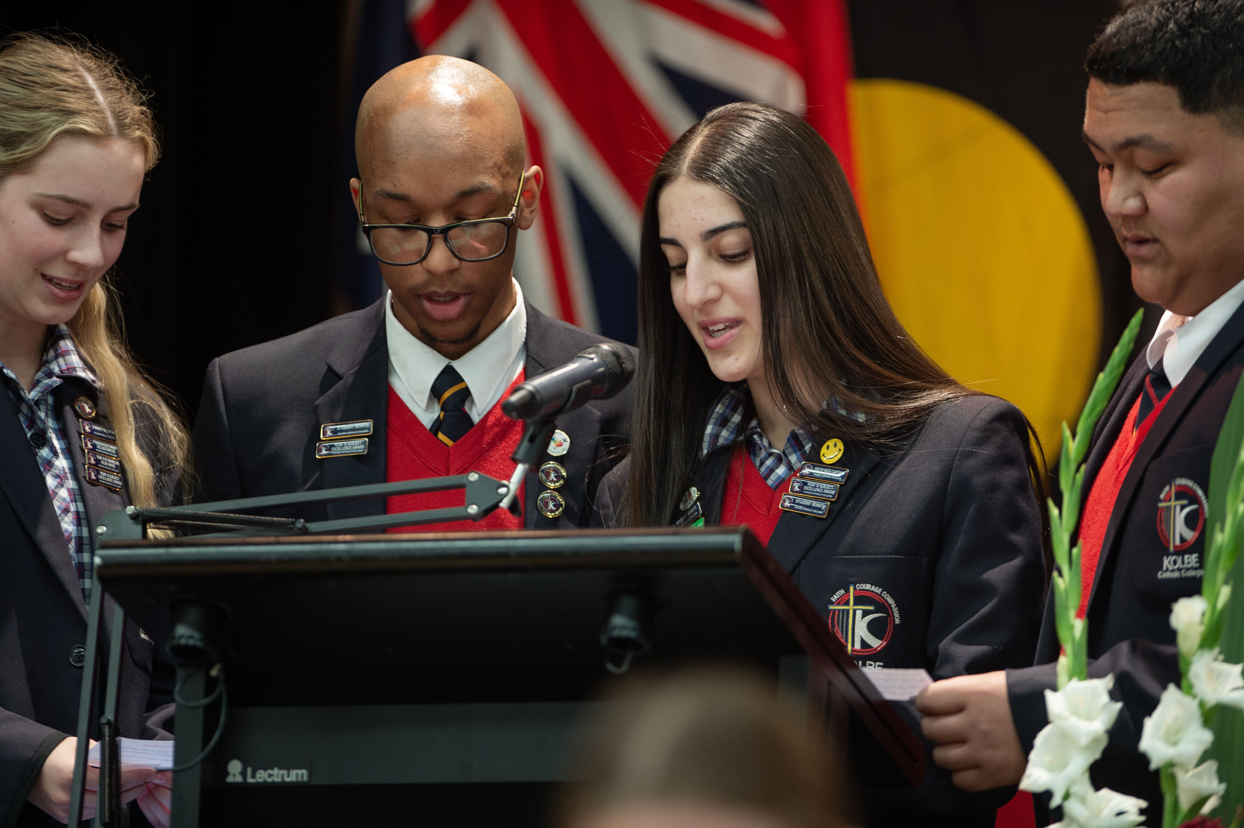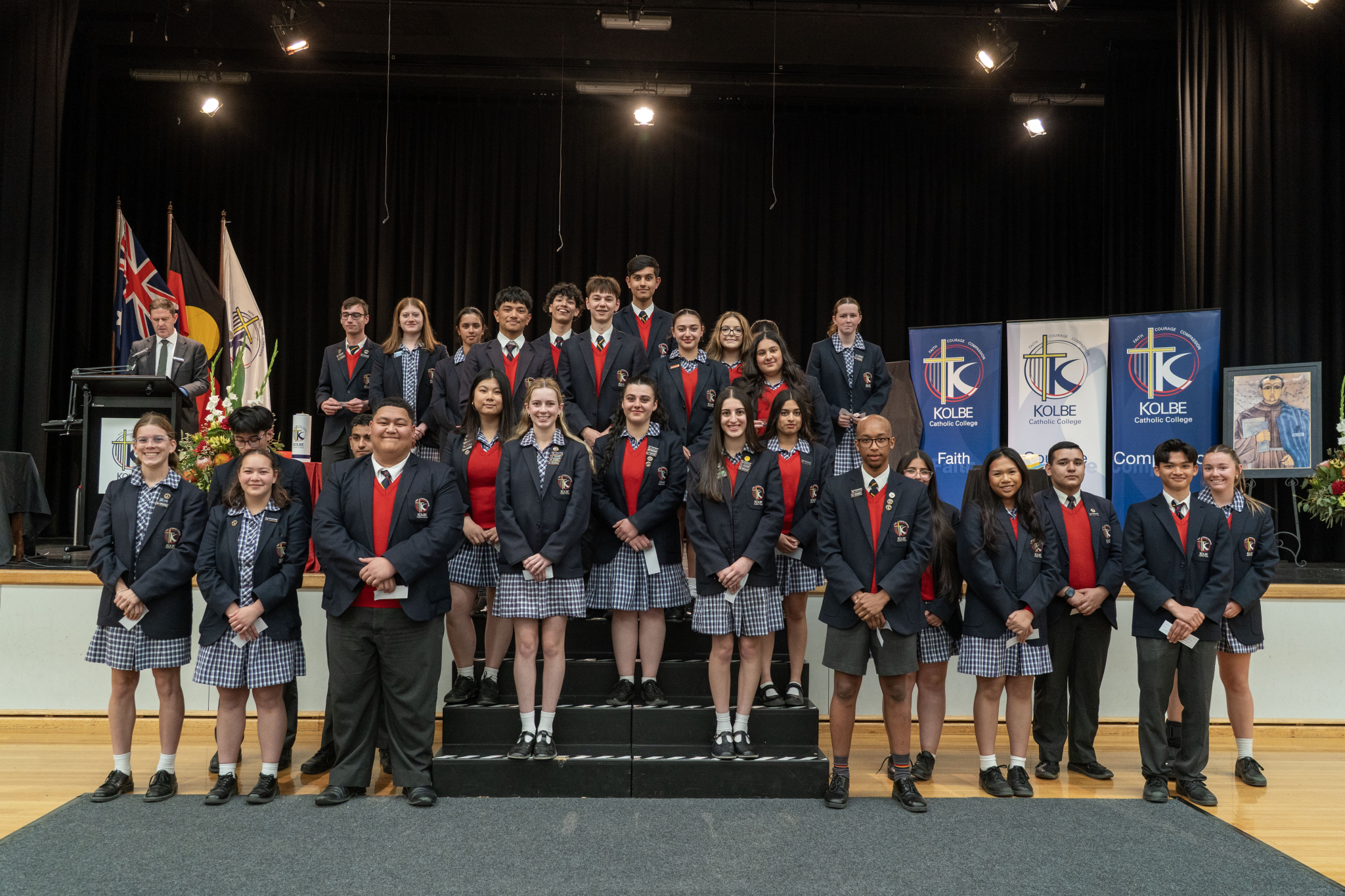 The assembly concluded with a powerful rendition of the Kolbe song, Faith, Courage and Compassion. The voices of our Year 12 students rang out with pride and unity, rising above the microphoned choir.