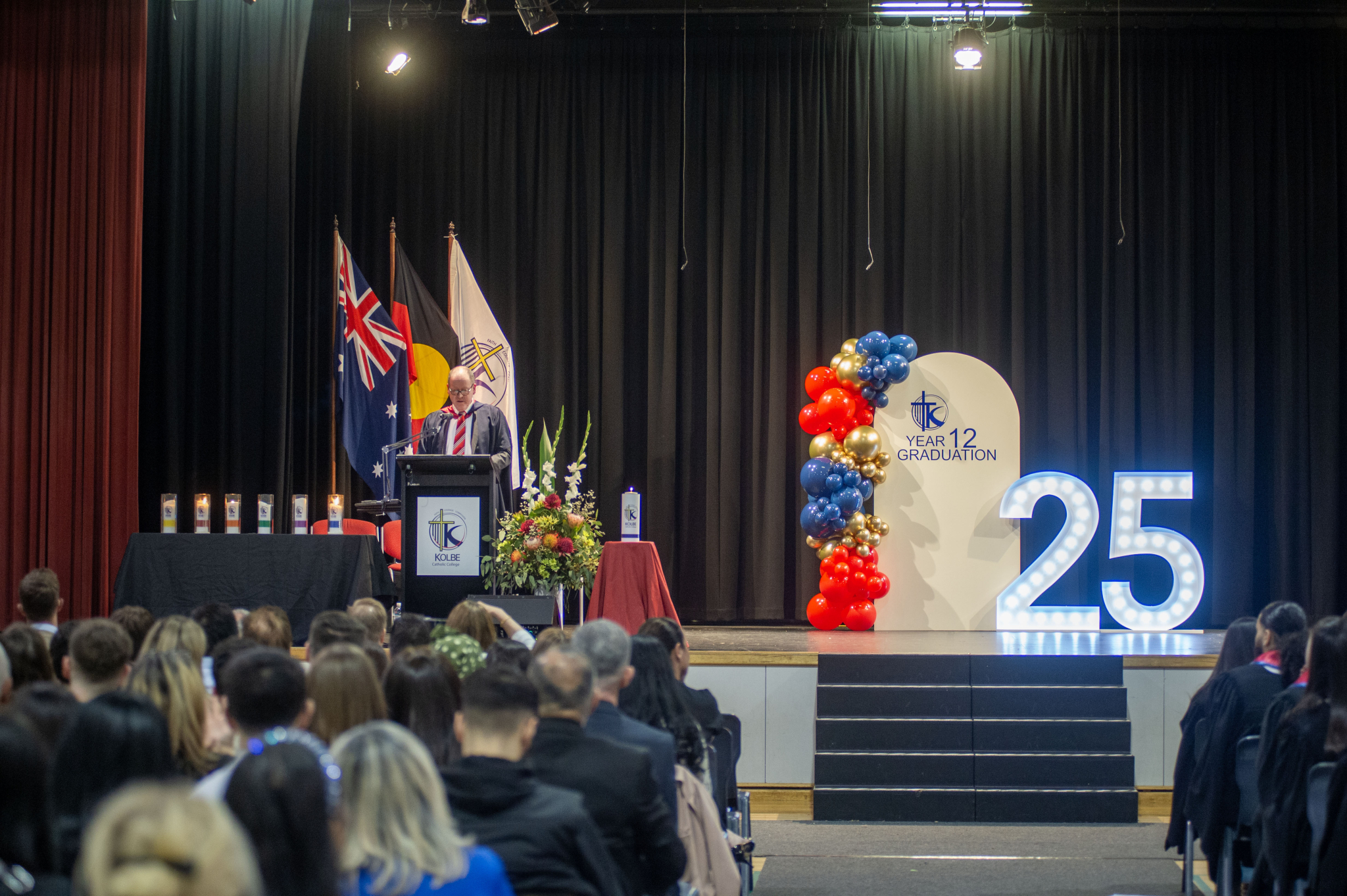A highlight of the assembly was the touching Then and Now photo montage, showcasing each student’s transformation from Year 7 to Year 12. This was followed by a nostalgic video journey through the cohort’s six years at Kolbe, evoking laughter, tears, and cherished memories.