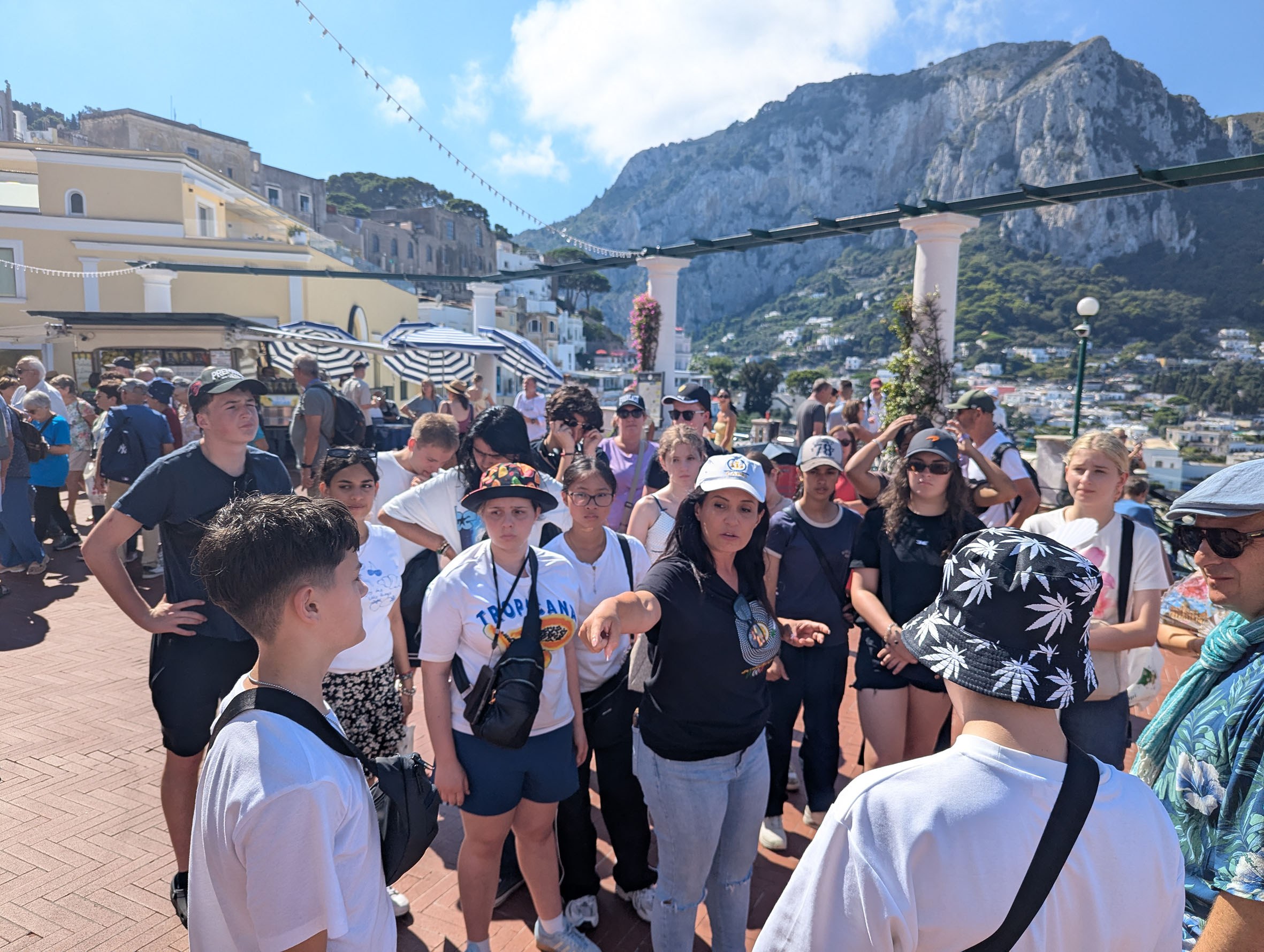 Following Pompeii, they relished some leisure time in Sorrento, enjoying the refreshing waters of the Tyrrhenian Sea. A highlight was an interactive gelato-making class, where students learned the difference between sorbet and gelato, equipping them with recipes to recreate such delights at home. The breathtaking Island of Capri awaited them next. With guidance from Elyce, they explored the island’s geological wonders, capturing picture-perfect moments against the stunning backdrop of the blue waters.