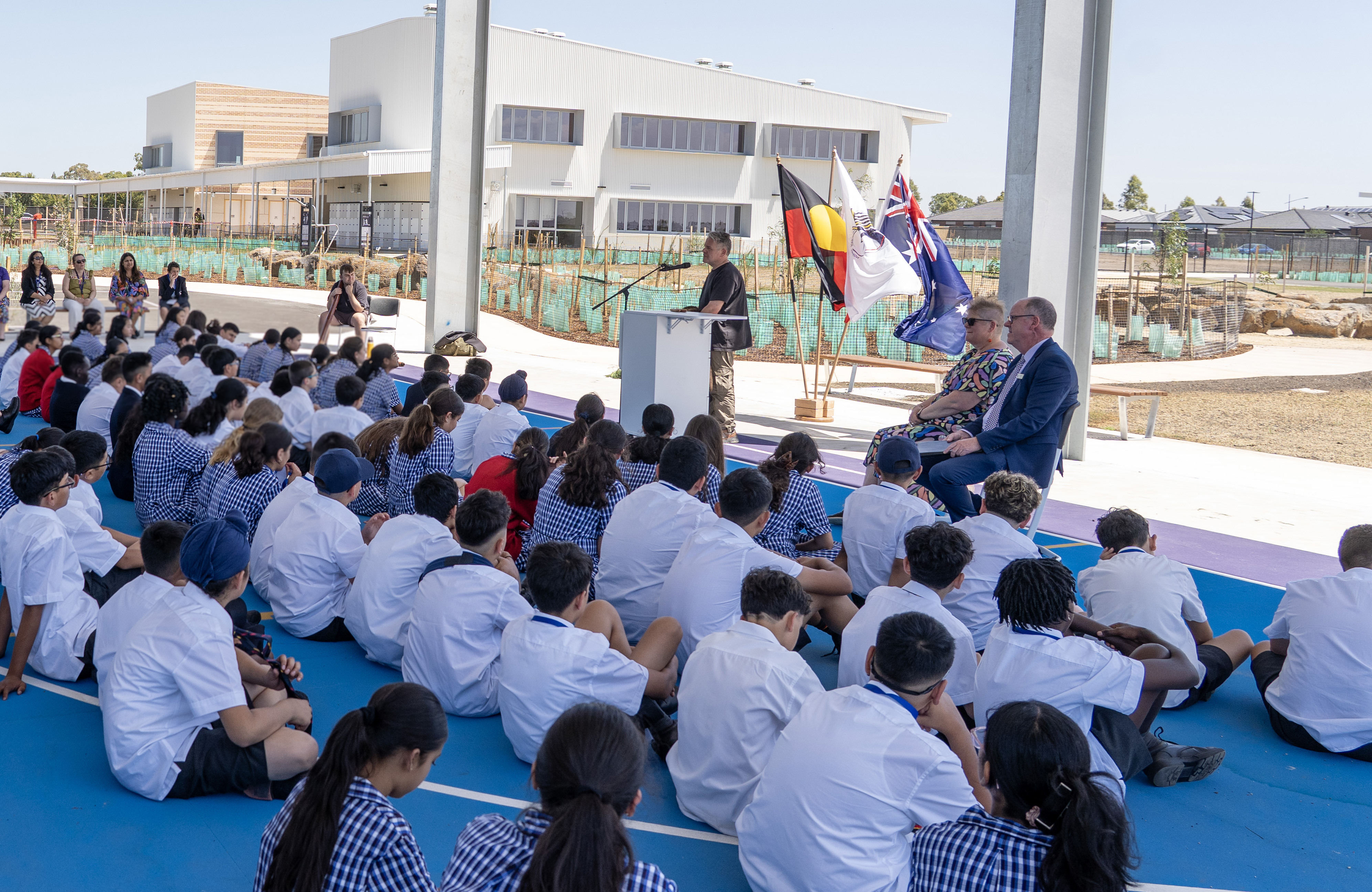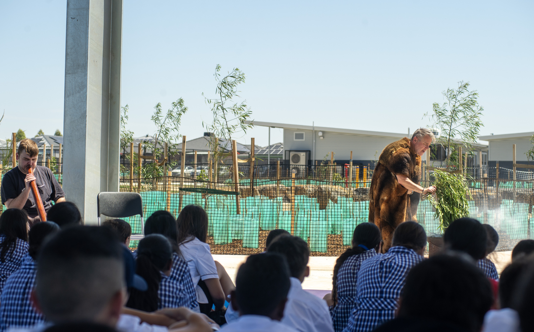 The deep, resonant sound of the didgeridoo echoed through the grounds commencing the ceremony. Pellyan shared his knowledge of the land, and students learned and sang a special Indigenous song, connecting them to the rich cultural heritage of the land. First-day jitters were put aside as some students bravely volunteered to read a special prayer.