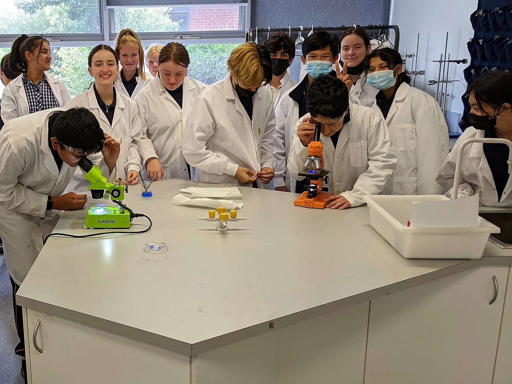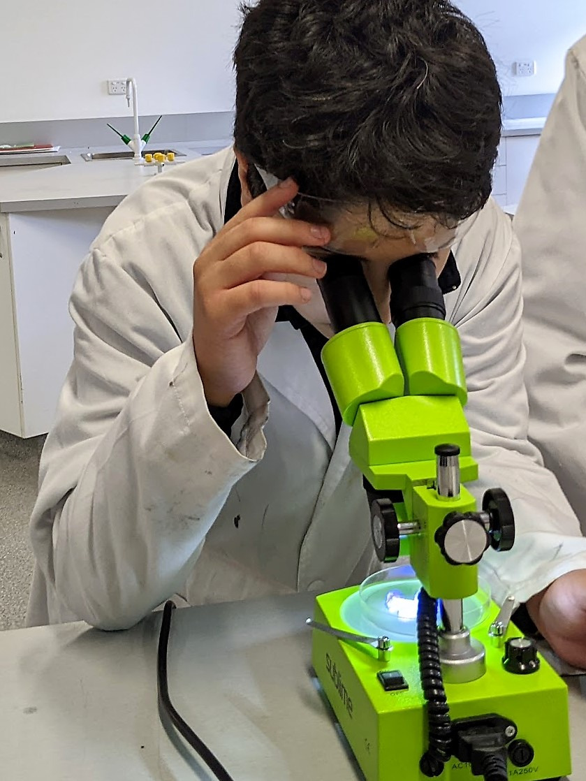During Term One, students used their knowledge of Chemistry and mixtures to create a saturated copper sulfate solution. They used some of it to grow a seed crystal and then used their seed crystal to grow a larger crystal. The students observed their crystals underneath a light microscope and a 3D stereo microscope.