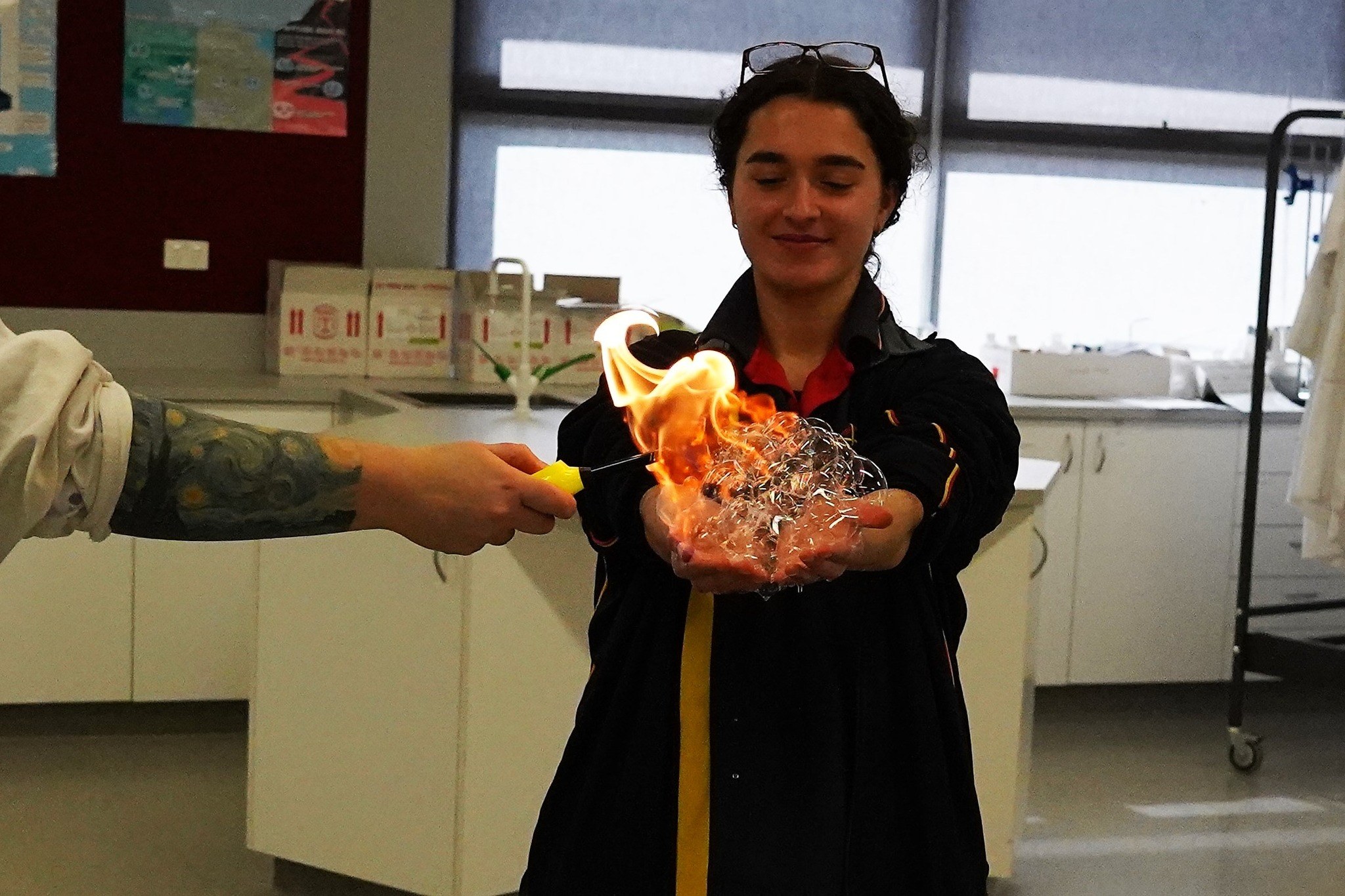Activities included methane bubbles, kinetic sand, soft drink taste tests, invisible ink, making molecules with lollies and a physics egg break challenge.