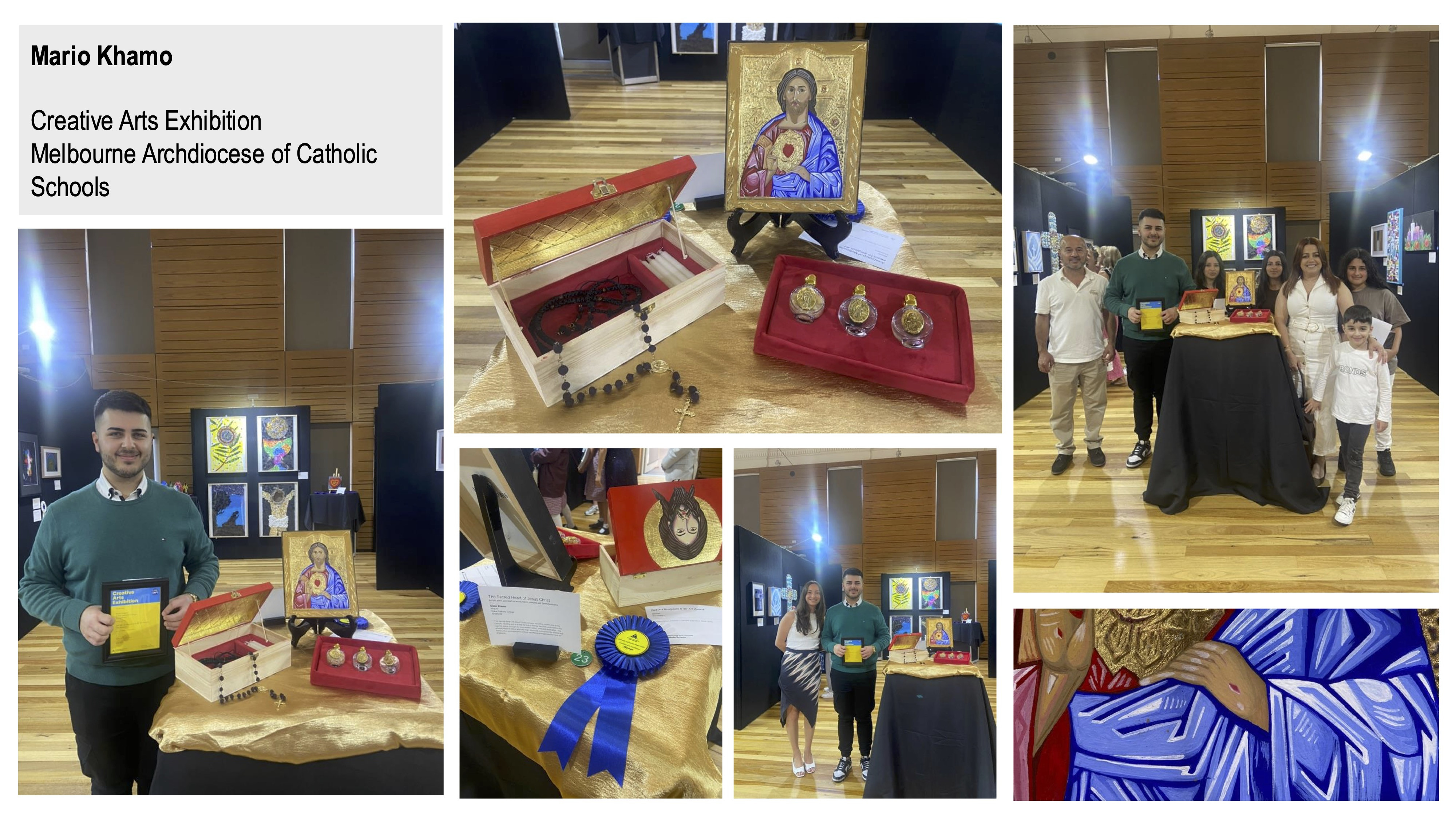 I am thrilled to share that Mario Khamo’s (Year 12, 2024) work was featured in the MACS Creative Arts exhibition. Not only was his work showcased, but Mario also achieved the remarkable distinction of being the only artist to win two prestigious awards: the Zart Art Sculpture and 3D Art Award, as well as the Archdiocese of Melbourne Award for Religious Art. Congratulations to Mario, and to his family for supporting him at the awards ceremony.