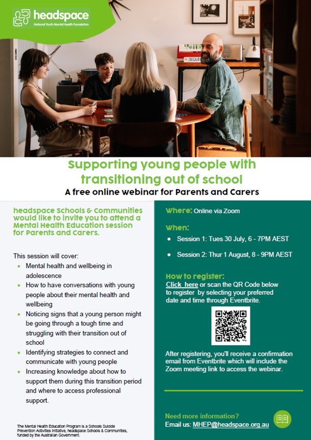 As we are nearing the end of a long and busy term, this is a reminder to staff and students to get some much needed rest over the holidays and look for ways to ‘refill your cup’. Self-care activities can help increase feelings of happiness and help to maintain health and wellbeing. Self-care is very individualised so we encourage parents to speak to their young people about what it looks like for them. It could range anywhere from doing an activity that makes you feel good or doing the basics, like eating and sleeping well, when you're struggling.